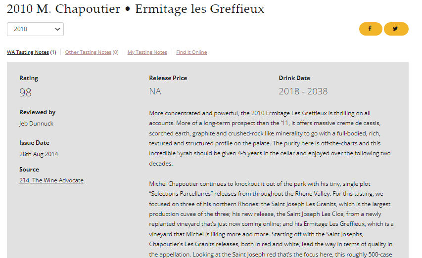 こちらは2012年ヴィンテージ。おなじく5万円台。WA99点。