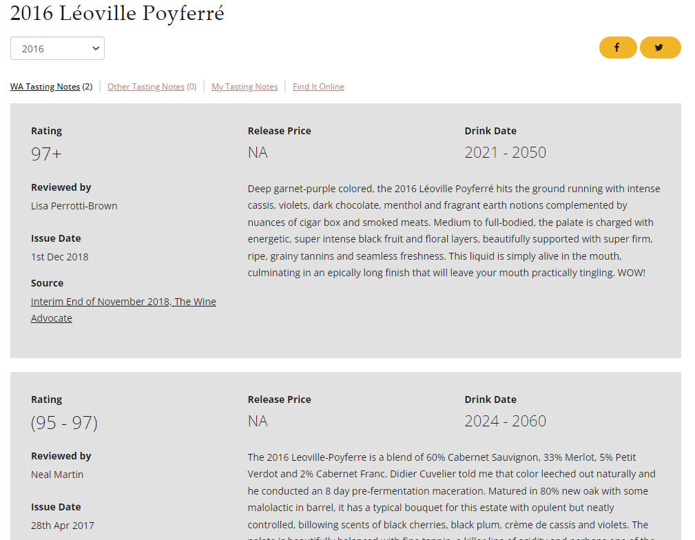 WA100点、ジェームスサックリング100点、ヴィノス99点。