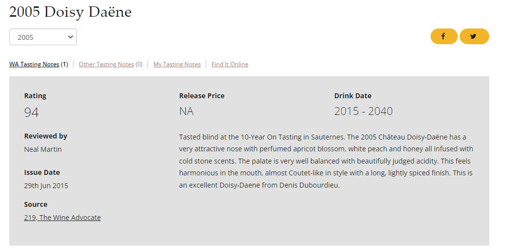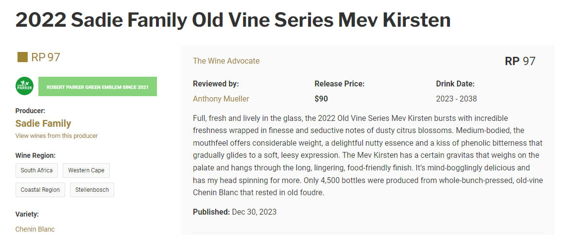 WA95+点。WA評ではミディアムボディのコメントあり。
