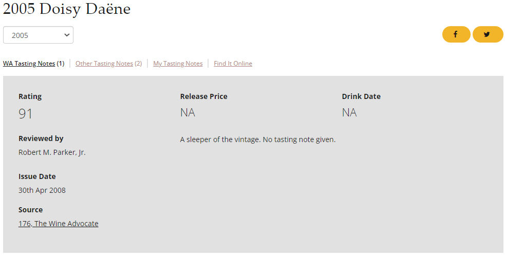 2018はWA未評点だけど、安定してWA92-93点くらい毎年獲得しているワイン。