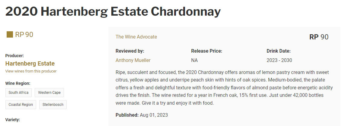 2020年、2021年ヴィンテージと、南アフリカの評論誌の第一人者である、イギリスのティムアトキンMW評は驚異の95点。2~3千円台 南アのメルローとしての地位を確実なものにしつつある銘柄です。