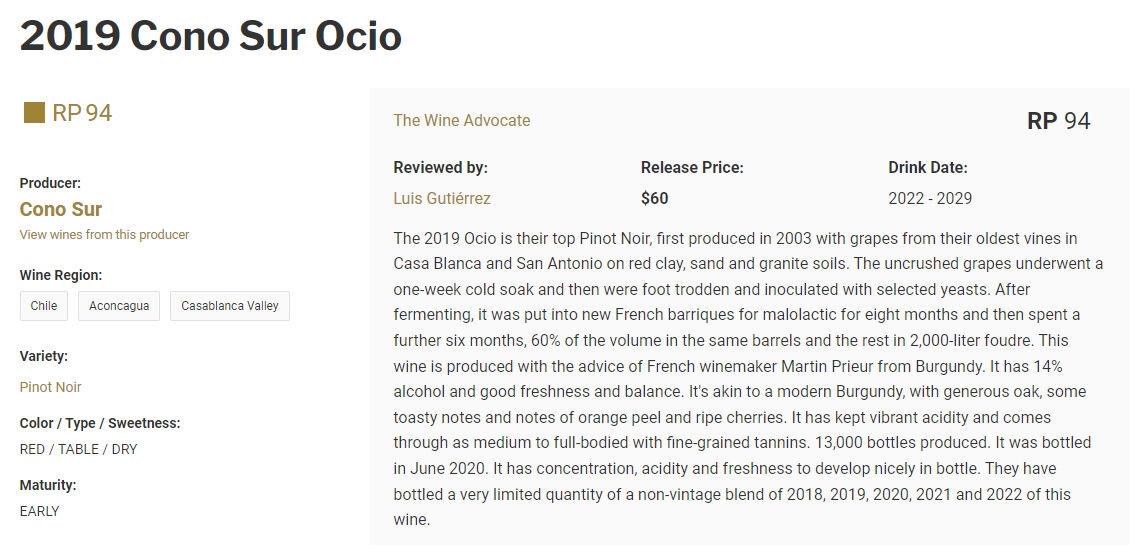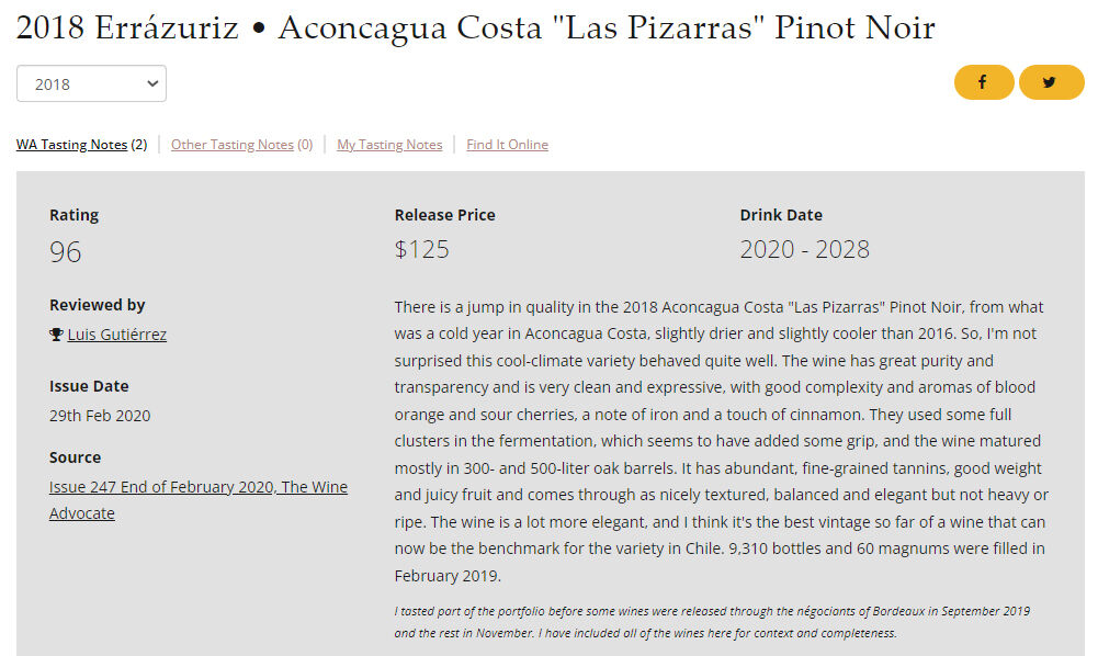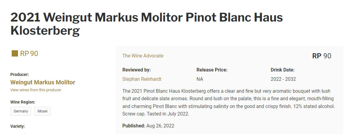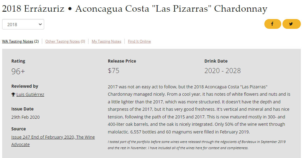WA90点、ジャンシスロビンソン17/20点、ジェームスサックリング94点
