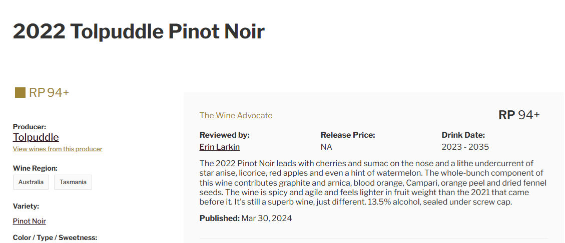 《1.4万円以上で送料無料》 トルパドル ヴィンヤード ピノ ノワール 2022 Tolpuddle Vinyard Pinot Noir 赤ワイン オーストラリア