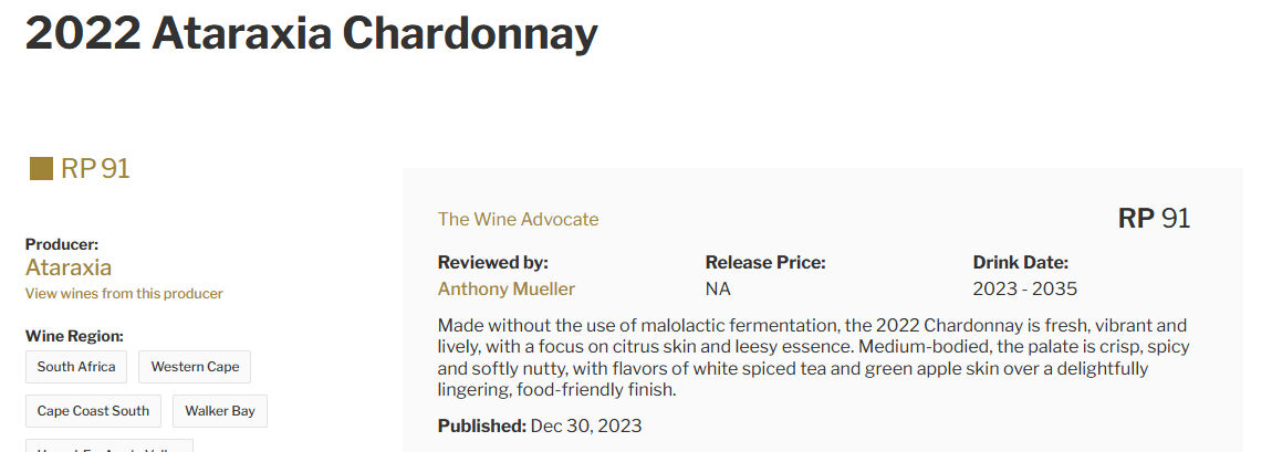 アタラクシア セレニティ 2020 Ataraxia Serenity 【南アフリカワイン】【赤ワイン】