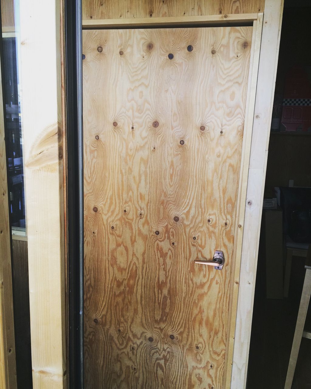 扉の横の木の柱が店内の入口の柱であります。開けたら即セラー扉です。