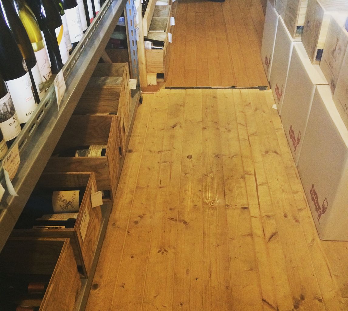 軽くこの床板の色が違う分くらいは拡張している感じです。つまり、前にテーブルがあったスペースの大半がセラーになった感じですね。