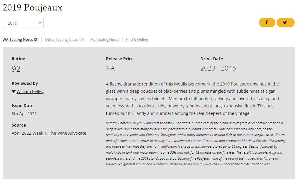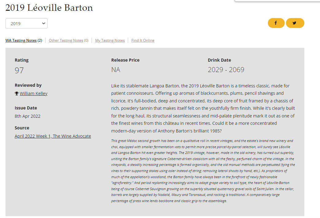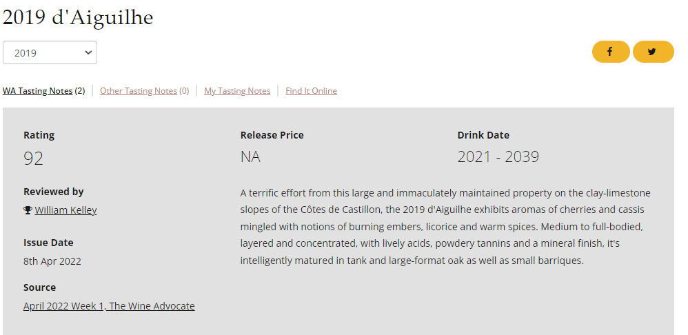 ティムアトキンMW95点の高得点。飲み頃予想2021-28年。