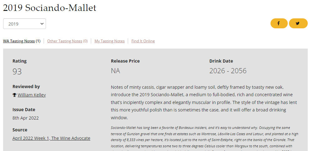 ヴェリタスさんのシャトーソシアンドマレ 2019