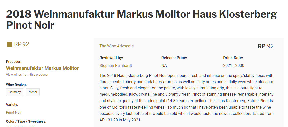 3千円台。ドイツのピノノワール。WA92点。