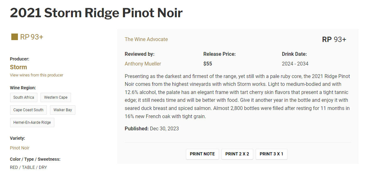 ココスさんのストーム リッジ ピノ ノワール 2021