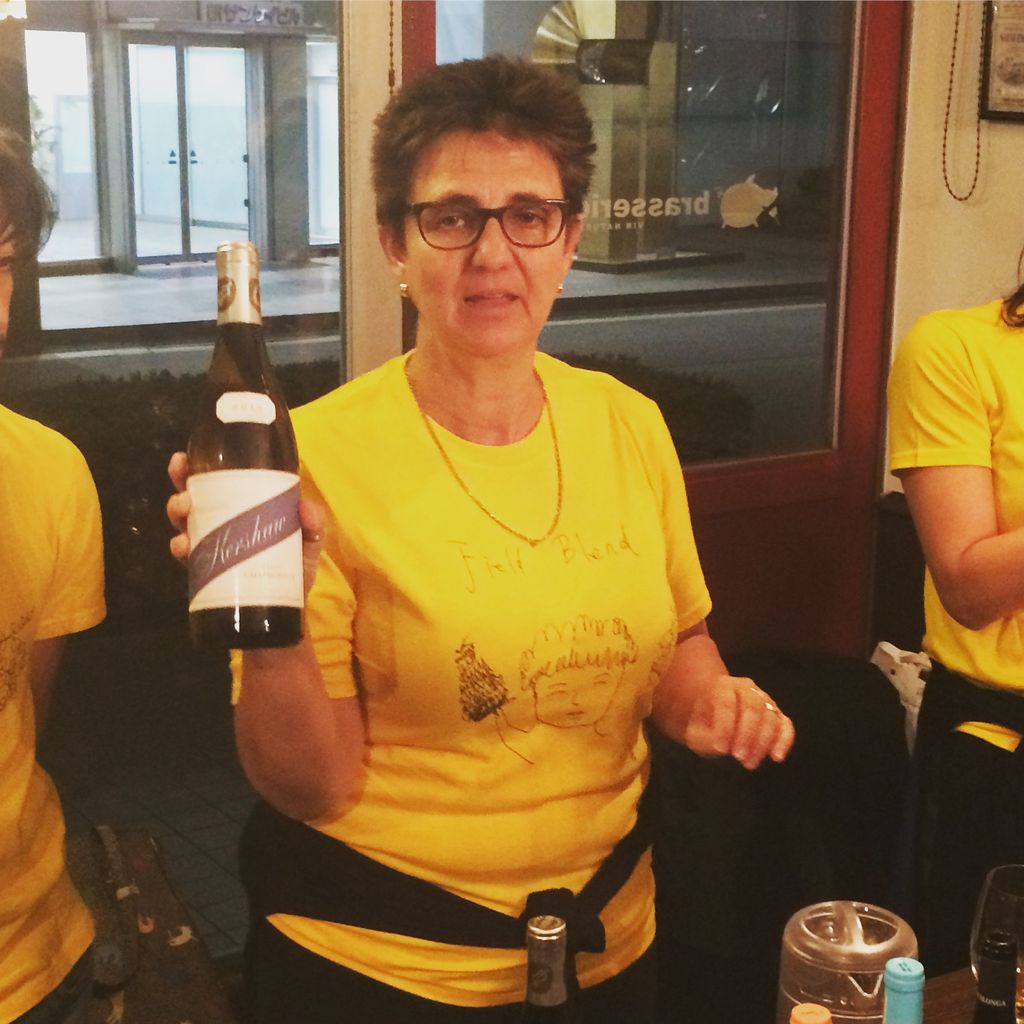 余談ですが、こちらのTシャツはワインレポートチームの「フィールド・ブレンドTシャツ」とのことで、会場で一般の人も購入できました(買った人はサインがもらえたりします)大橋MWの秘書の方によるデザインとのこと。